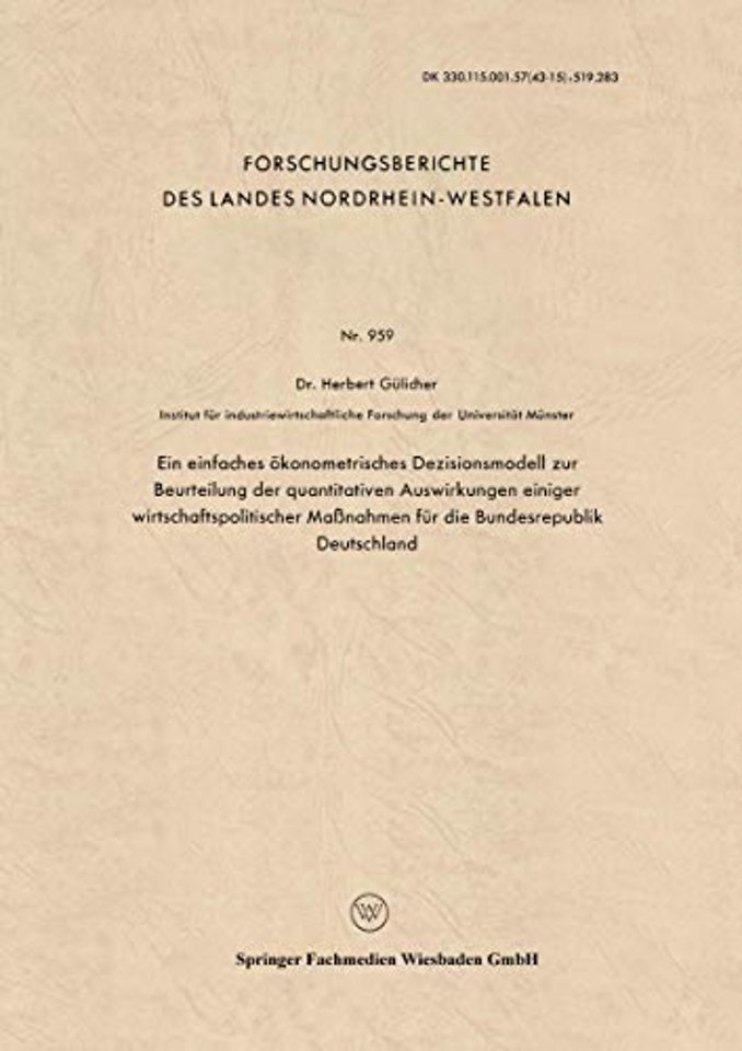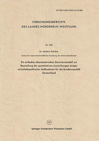 Ein einfaches ökonometrisches Dezisionsmodell zur Beurteilung der quantitativen Auswirkungen einiger wirtschaftspolitischer Maßnahmen für die Bundesrepublik Deutschland