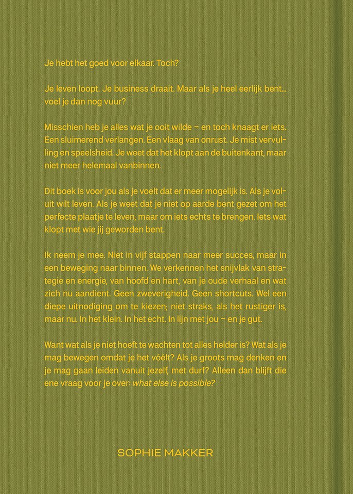 Dit boek is voor jou als je voelt dat er meer mogelijk is. Als je voluit wilt leven. Als je weet dat je niet op aarde bent gezet om het perfecte plaatje te leven, maar om iets echts te brengen. Iets wat klopt met wie jij geworden bent. Ik neem je mee. Niet in vijf stappen naar meer succes, maar in een beweging naar binnen.